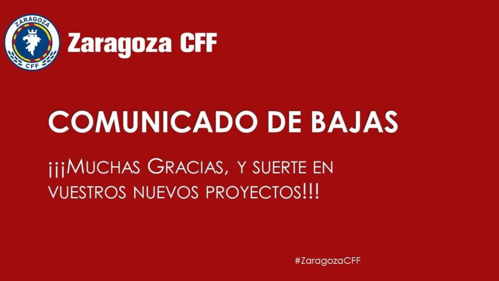 Hasta el momento, no continuarán en el Zaragoza Club de Fútbol Femenino la próxima temporada las siguientes jugadoras: Patricia Larqué, Sara del Estal, Olivia Oprea, Oliva Polvillo, Nerea Agüero, Laura Martínez, Judith Acosta, Madelyn Ventura, Bárbara Santibáñez, Gisele Montenegro e Isabel Longa.