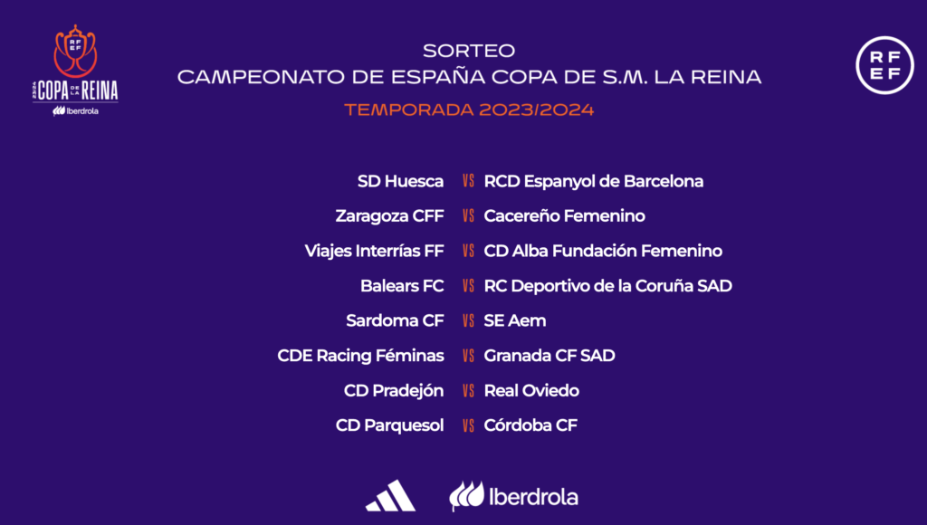Este martes se ha celebrado en la Ciudad del Fútbol de Las Rozas el sorteo de emparejamientos de la primera ronda de la Copa de la Reina. En esta primera eliminatoria participan 32 equipos de Primera, Segunda y Tercera Federación. La eliminatoria se jugará entre el 12 y 14 de septiembre con horarios definitivos aún por definir.