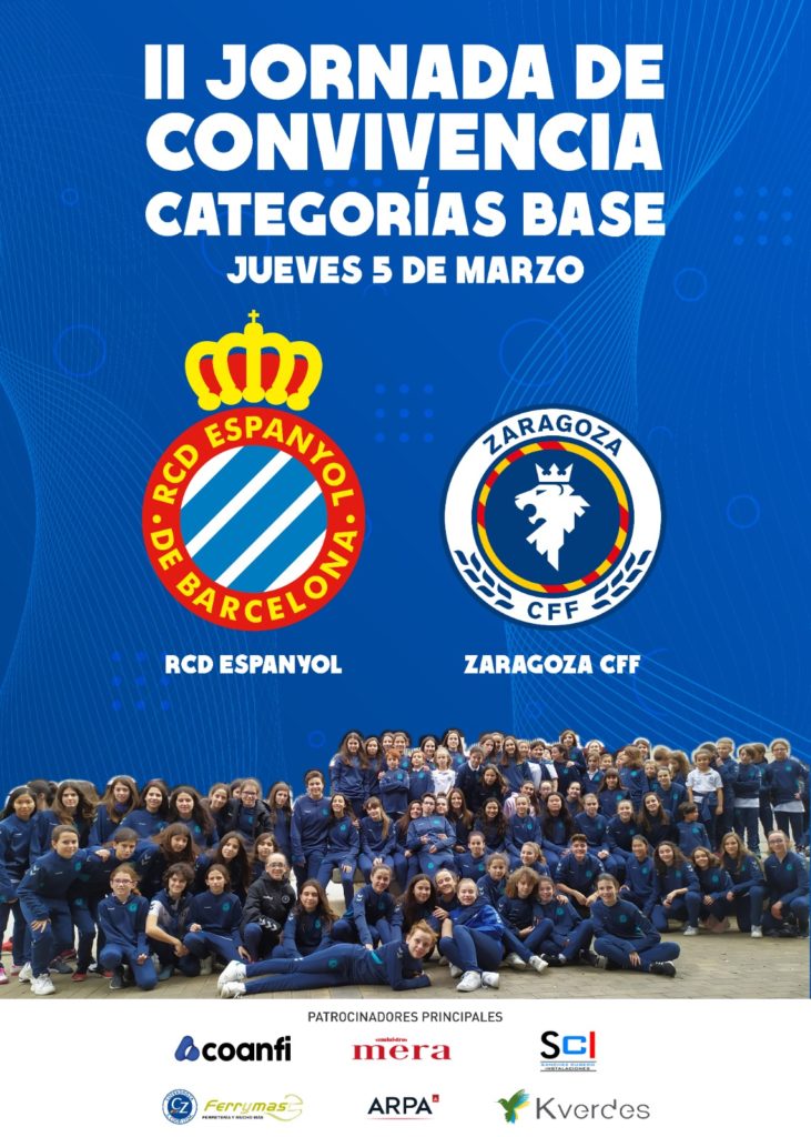 El Zaragoza CFF continua con su infatigable trabajo con la cantera, potenciando el fútbol femenino de Aragón y siendo el referente de nuestra comunidad. Este próximo jueves 5 de marzo se desplazará a Barcelona con motivo de la II Jornada de Convivencia para medirse ante el RCD Espanyol.
