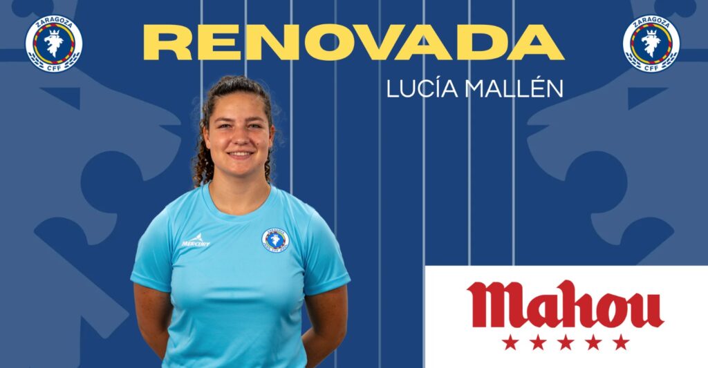 La guardameta Lucía Mallén seguirá defendiendo la portería del Zaragoza CFF durante la temporada 2025 – 2026. Mallén regresó a la disciplina zaragocista el verano pasado después de haber jugado dos temporadas en la SD Huesca.