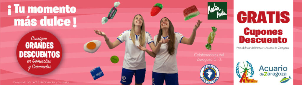 El Zaragoza CFF y Martín Martín vuelven a ir de la mano un año más en la campaña ‘Tu momento más dulce’, que tiene como caras visibles a las jugadoras del primer equipo del conjunto aragonés Mady Brown, Nachula, Teresa Rey, Lucía Fuertes, Laura Martínez y Nora Sánchez, lo que reafirma un año más la estrecha colaboración entre el club y la prestigiosa cadena de aperitivos, que comenzó en el 2017.