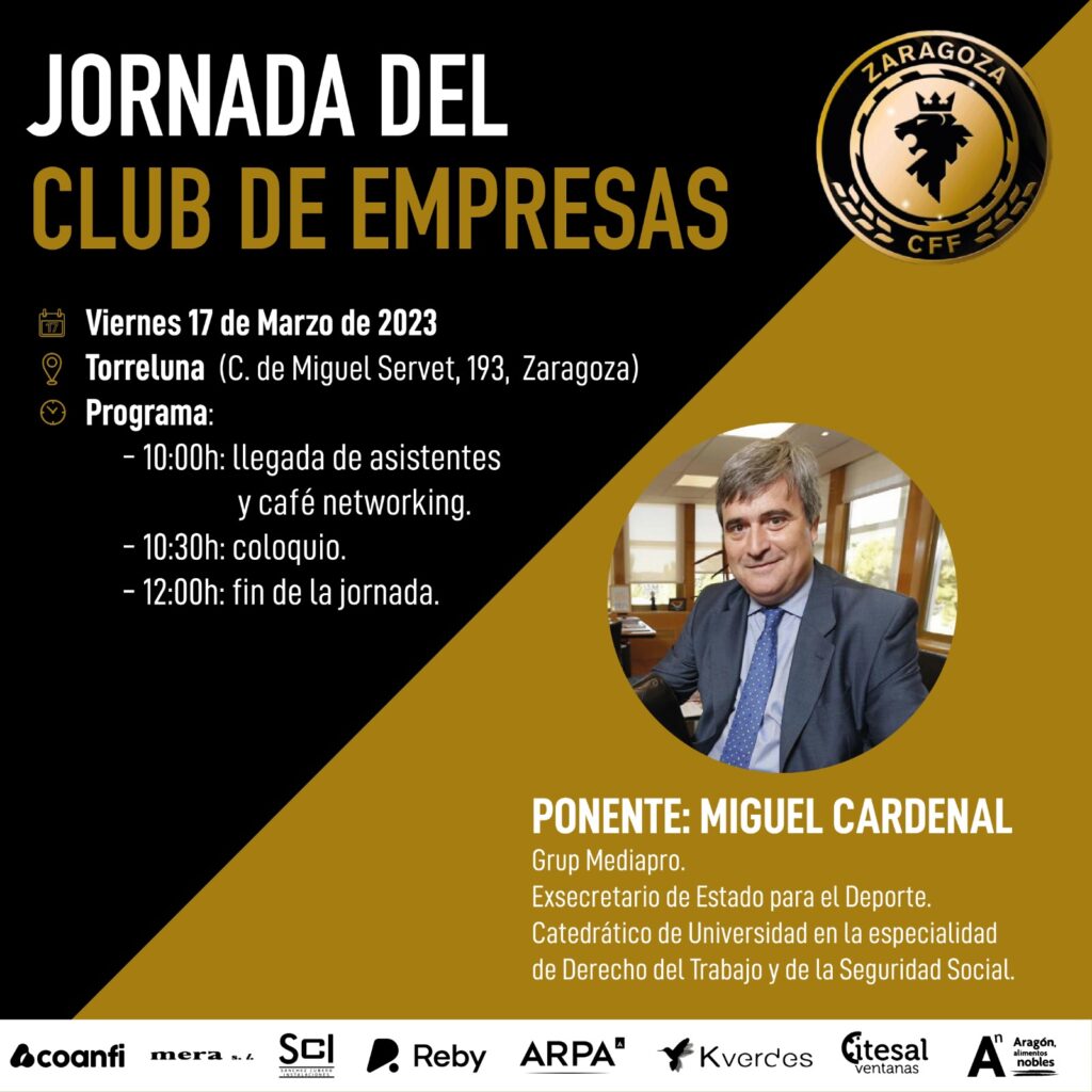 El Zaragoza CFF celebra su jornada del Club de Empresas el próximo viernes 17 de marzo en las instalaciones de Torreluna, en la Calle Miguel Servet 193 de Zaragoza. La jornada comenzará a las 10:00 horas con un café networking seguido, desde las 10:30 horas, de un coloquio.