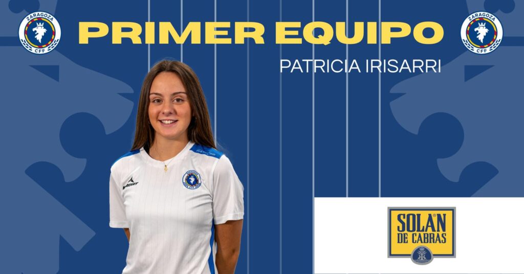 Patricia Irisarri tendrá ficha del primer equipo del Zaragoza CFF para la temporada 2025 – 2026. Irisarri se incorporó al filial de Tercera RFEF en 2023. Es una jugadora rápida que destaca con su velocidad como extremo.